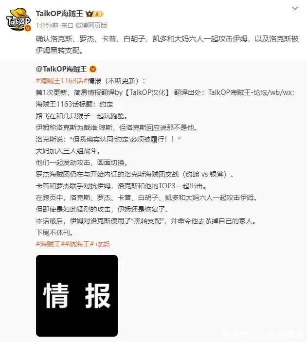 漫画最新一话的标题是约定,这个标题的应该是指洛克斯和戴维琼斯的约定。扉页小故事没有,和之国篇章的小故事终于完结了,接下来会开启新的扉页小故事。在神之谷大战中,真正的决战来临了,这场堪称史诗级的战争,伊姆大人也展示出压倒性的力量。