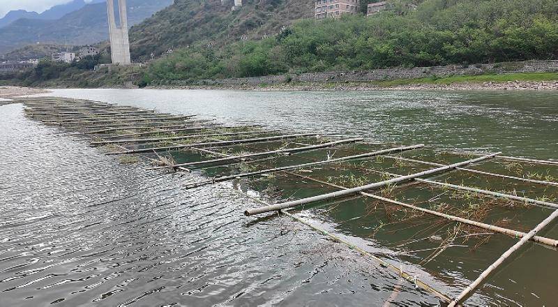 在赤水河习水土城段,一个个人工鱼巢错落漂浮在水面,呈网格状有序布局。工作人员选用赤水河沿岸天然草木作为原材料,为鱼类鱼卵提供了天然附着载体,有效提升鱼卵产卵率和孵化率;同时,通过前期实地勘察调研,精准选择鱼类繁殖适宜的缓流区域布设鱼巢,为鱼类繁衍创造最优条件。